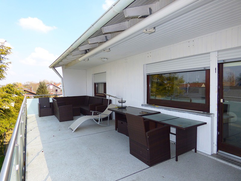 Neben den bereits aufgezählten Räumlichkeiten, ist im Außenbereich eine große, überdachte Terrasse vorhanden (im Gartengeschoss). Ein seitlicher Teil der Terrasse wurde zu einer Art Wintergarten umfunktioniert, da er überdacht und seitlich geschlossen wurde. Zwei weitere Abstellräume sind hier zwecks Stauraums zusätzlich gegeben. Und auch auf dem Dachboden können Sie Ihr Hab und Gut verstauen – Sie sehen, hier ist viel Platz!