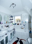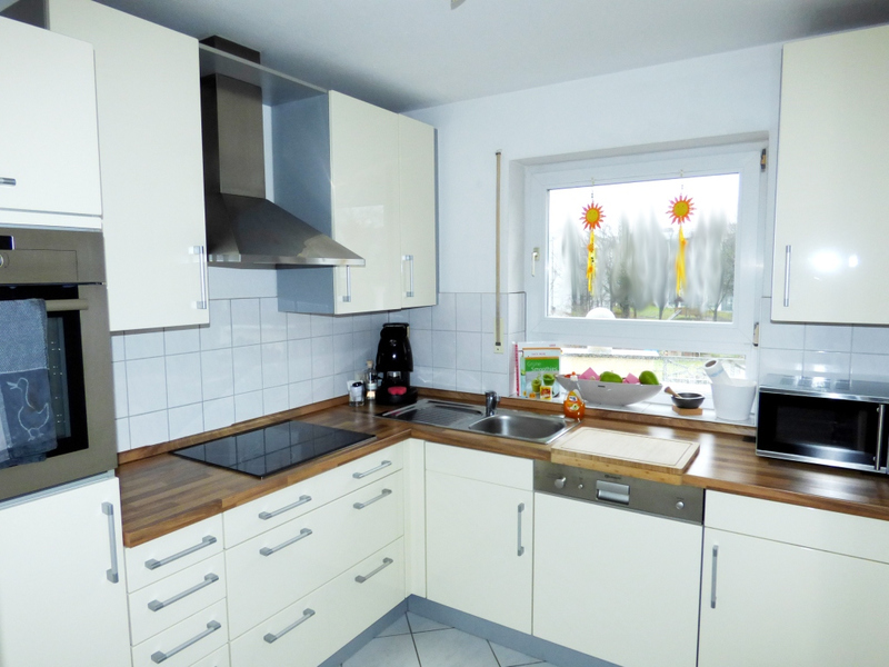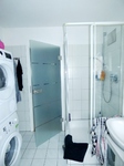 Des Weiteren liegen auf der ersten Ebene die Küche, das Kinderzimmer, der Abstellraum, die Diele und das Tageslichtbad. Dieses verfügt über eine Badewanne, eine Dusche, zwei Waschbecken, WC und einen Waschmaschinenanschluss. Sollten Sie die Wäsche nicht in der Wohnung erledigen wollen, können Sie auf den gemeinschaftlichen Waschraum im Keller ausweichen.