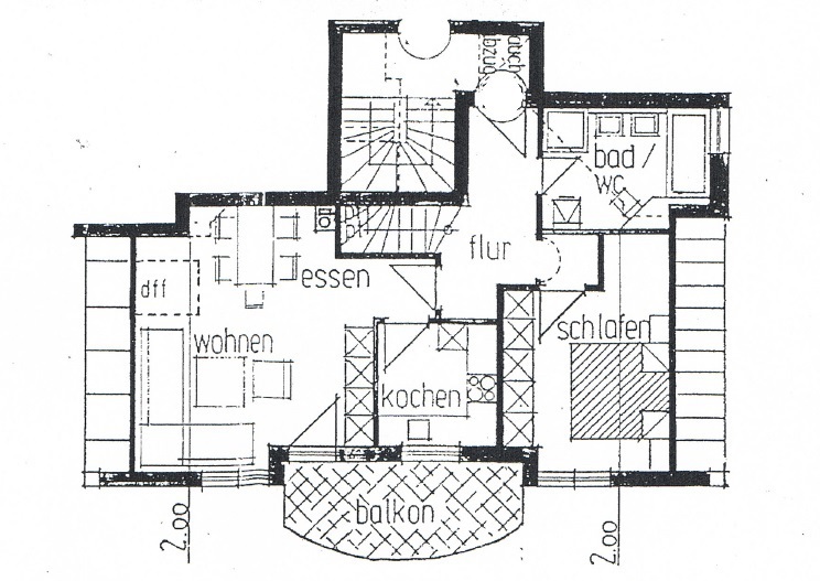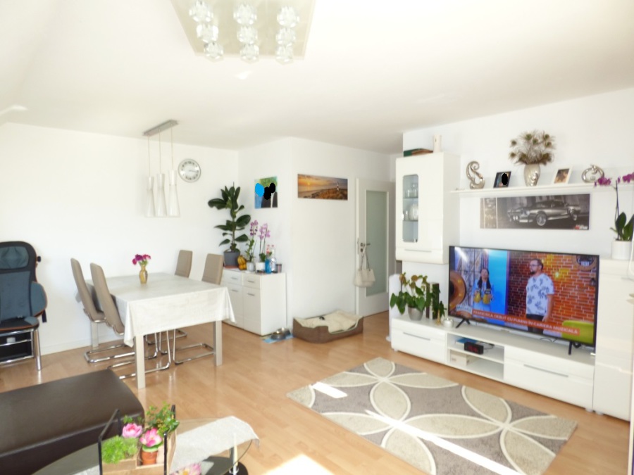 In einer zentralen Lage von Friedrichshafen, liegt dieses 1992 erbaute Mehrfamilienhaus, welches die Wohnung im 2. / 3. OG (jeweils DG) beherbergt. Die Wohnung erstreckt sich auf 81 m², die sich auf zwei Ebenen verteilen. Unten finden Sie den ca. 23 m² großen Wohn- und Essbereich vor, samt Zugang zum süd-westlich ausgerichteten Balkon. Das Wohnzimmer ist durch die günstige Ausrichtung hell und freundlich.