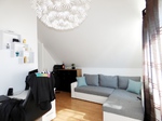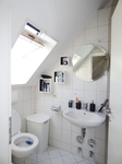 Das Schlafzimmer ist ebenso wie das darunterliegende Wohnzimmer süd-westlich ausgerichtet und daher ebenfalls schön hell. Das „Bad en suite“ wird vom Schlafzimmer aus betreten. Dieses ist mit einem Fenster ausgestattet und bietet Ihnen eine Dusche mit Waschbecken und WC. Die überdurchschnittliche Höhe des Studios in Verbindung mit den Dachschrägen verleiht der Räumlichkeit eine sehr hochwertige Note!