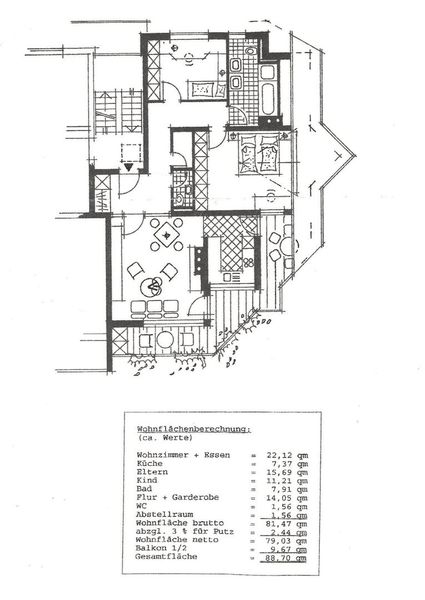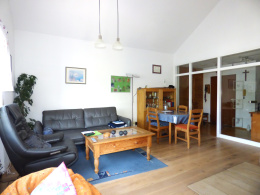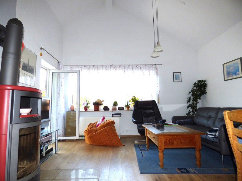 In einer ruhigen Lage von Eriskirch, liegt dieses gepflegte, 1984 erbaute Mehrfamilienhaus, welches die 89 m² große Wohnung im 2. OG beherbergt. Den Eingangsbereich bildet eine großzügige Diele mit einem praktischen Einbauschrank. Die Diele ist lichtdurchflutet, da sie vom Wohnzimmer durch ein großes Glaselement getrennt ist. Der angrenzende, 22 m² große Wohn- und Essbereich bietet Zugang zur Küche und zum süd-westlich ausgerichteten Balkon. Durch die günstige Ausrichtung ist das Wohnzimmer schön hell und freundlich! Die überdurchschnittliche Höhe des Wohnraums in Verbindung mit den Dachschrägen verleiht der Räumlichkeit eine sehr hochwertige Note! Zusätzlich ist im Wohnzimmer ein holzbetriebener Kaminofen positioniert worden, der die Wohlfühlatmosphäre steigert. Besonders die Winterabende werden hier richtig gemütlich!