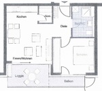Die Wohnung überzeugt durch einen sehr gut durchdachten Schnitt, sodass sie größer als 52,5 m² erscheint. Hervorzuheben sind hier v.a. die Raumoffenheit sowie die bodentiefen Fenster mit Zugang zum großen, entlang der Wohnung verlaufenden Balkon, die der Wohnung dieses besondere, luftige Wohnflair verleihen!