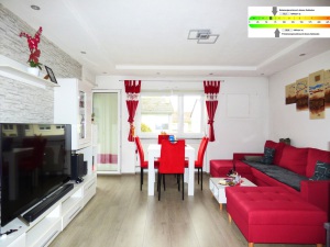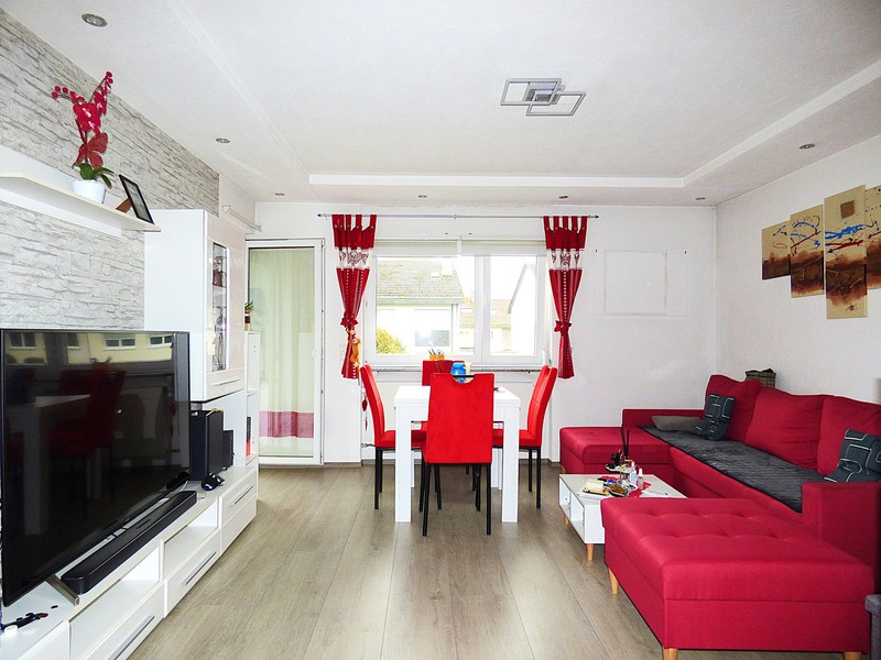 Diese schicke 3-Zimmer-Eigentumswohnung befindet sich im EG/Hochparterre eines im Jahr 1961 erbauten Mehrfamilienhauses. Die ca. 61 m² Wohnfläche verteilen sich auf Flur (mit Einbauschrank), Wohnzimmer mit Balkon, Schlafzimmer, Kinderzimmer, Tageslichtbad (mit Badewanne) sowie eine Küche. Im Zuge der Renovierungs- und Modernisierungsmaßnahmen in der Wohnung vor ca. 10 Jahren, wurden beispielsweise alle Böden erneuert (neuere Fenster von 2008 waren bereits eingebaut), das Tageslichtbad komplett neu gemacht (inkl. Leitungserneuerung) und mit der Toilette vereinigt, sowie die Elektrik erneuert. Statt einer Dusche, wurde das Bad mit einer neuen Badewanne mit Duschmöglichkeit ausgestattet, was v.a. für Familien mit Kindern vorteilhaft ist. Durch die Vereinigung des Bades mit der Toilette, ist das Bad nun mit 2 Fenstern ausgestattet und dadurch heller und freundlicher. Ein Waschmaschinenanschluss liegt hier vor, sodass Sie Ihre Wäsche bequem in der Wohnung erledigen können. Der Boiler zur Warmwasseraufbereitung wurde in den Keller verlegt, dadurch wurde im Bad zusätzlicher Raum geschaffen.