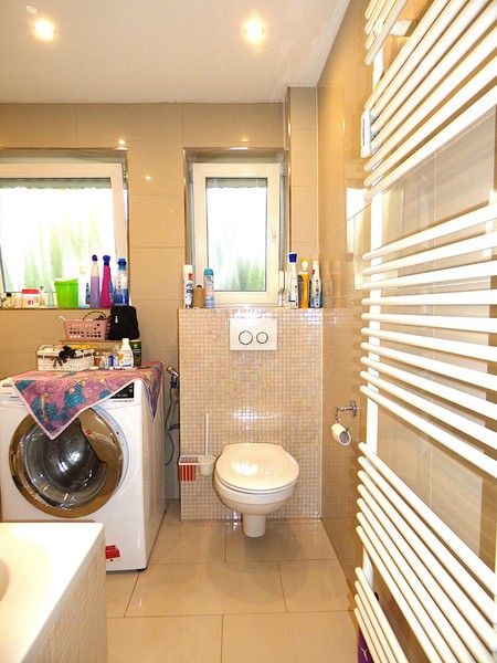 Gas-Zentralheizung, Warmwasser über Boiler (im Keller)