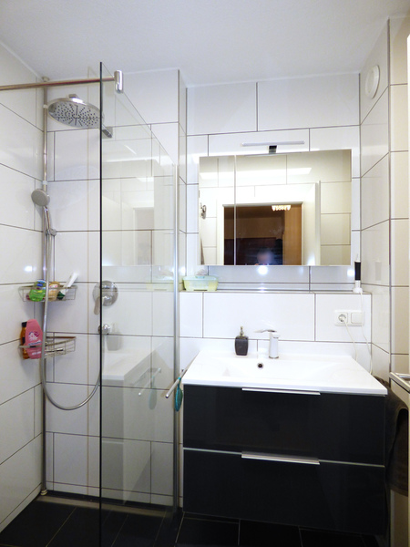 Das Bad ist modernisiert worden und erstrahlt in neuem Glanz. Es ist mit einer barrierefreien Dusche ausgestattet. Ein Waschmaschinenanschluss liegt hier vor.