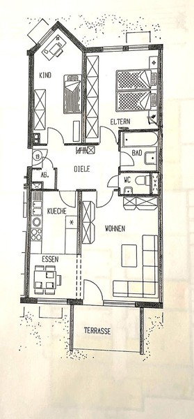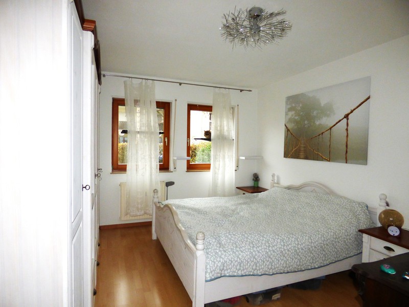 Diese schöne, modernisierte Wohnung liegt in einer ruhigen Wohnlage von Markdorf. Das Mehrfamilienhaus ist 1993 erbaut worden. Die Wohnung liegt im Erdgeschoss. Die 75 m² Wohnfläche verteilen sich auf Wohnzimmer (gen Süden), Küche (mit Einbauküche und Essecke), Kinderzimmer, Schlafzimmer, Bad, Diele, Abstellraum und Terrasse. Die überdachte Terrasse ist südlich ausgerichtet, sie wird vom Wohnzimmer aus betreten.