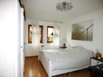 Die Räume sind allesamt mit einem geschmackvollen, hellbraunen Laminat ausgelegt. Das Badezimmer sowie die Küche sind gefliest.